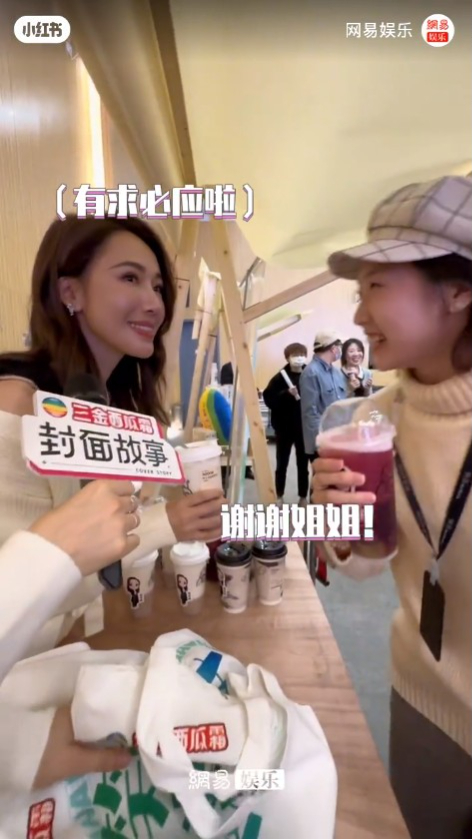 從網民的照片見到李施嬅當日身穿米白色冷衫長外套,不過就「下衣失蹤」只穿上厚底短靴,遠看就形成「五五身」,令網民的鏡頭如同照妖鏡一樣!不過李施嬅就心情大靚,見到在場市民都揮手打招呼,甚至在現場派奶茶,有不少網民都激讚她笑容好看,真人勁有氣質!