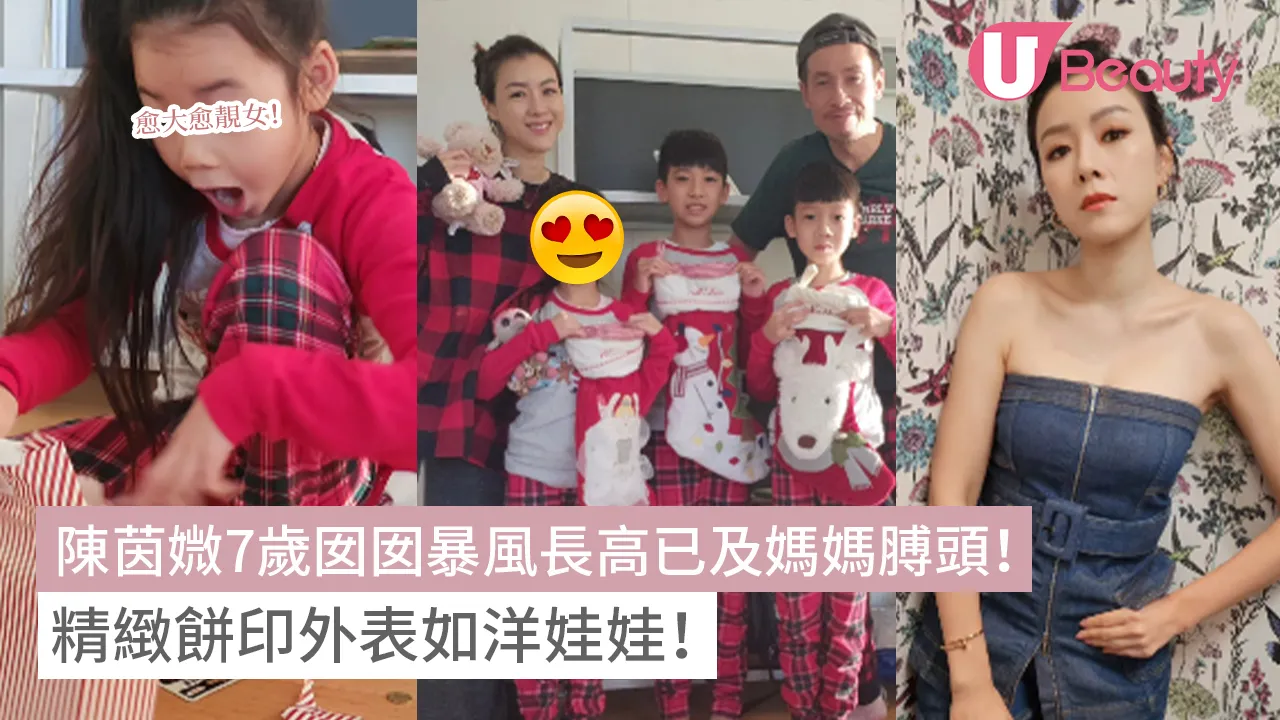 陳茵媺與陳豪結婚10年育有兩子一女,活躍在社交網絡的她不時都會大晒一家五口的生活點滴十分溫馨,是圈中數一數二的模範家庭。近日陳茵媺在Instagram上載一家五口開心過聖誕節的相片,女兒Camilla身形高䠷已及媽媽膊頭,外貌就如洋娃娃一樣,不少網民都大讚囡囡是「mini Aimee」!