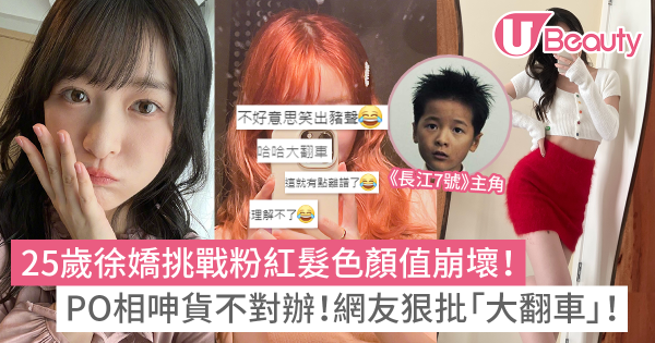 早前,徐嬌挑戰粉紅髮色失敗,被指顏值崩壞,造成一時熱話!徐嬌於社交平台上載自拍及給髮型師的參考圖,大呻貨不對辦:「我給髮型師的髮型師給我染的,誰能幫我理解一下」部分網友留言:「理解不了」、「這就有點離譜了」、「大翻車」、「色盲有點嚴重啊這個」、「不好意思笑出豬聲」、「怎麼染成這樣」、「怎哈哈哈哈哈怎麼回事」、「染頭髮真的一不留神就翻車」。