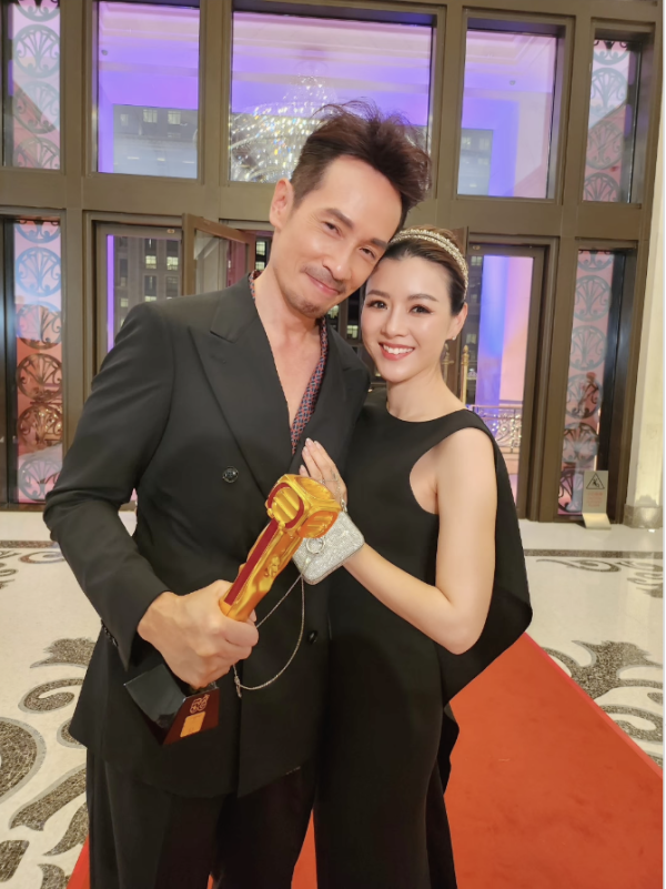 作為圈中出名sweet的二人得獎後又怎會不好好慶祝,Aimee在社交平台上分享了一條影片,一開頭是二人換妝後美美的合照,Aimee更肉緊嘟嘴錫老公。在數張頒獎禮開始前的照片後,就是Aimee親自頒獎給老公時感動落淚,以及二人相擁的照片。