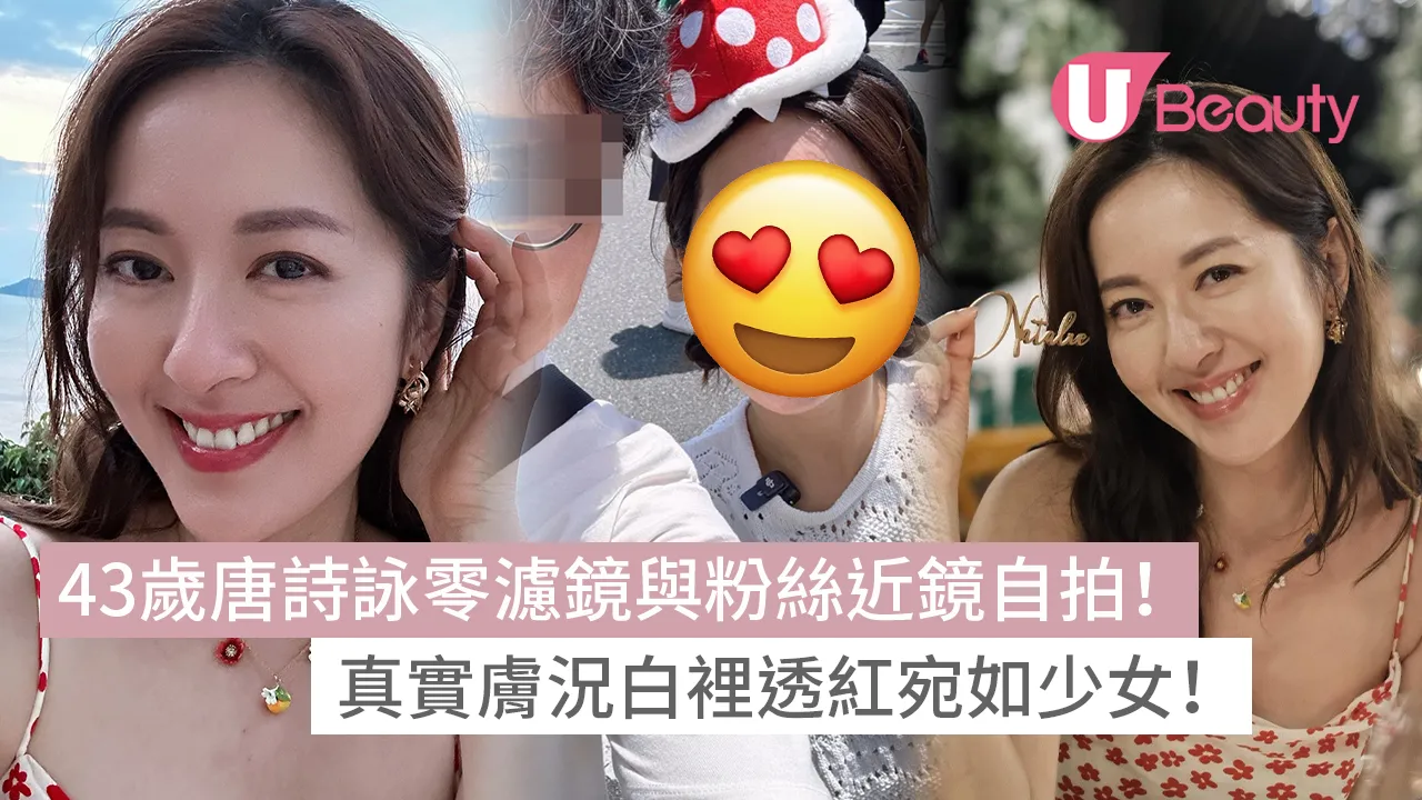 43歲的唐詩詠之前挑戰馬拉松10公里賽事,完賽後的素顏靚相引來網民大讚,真實的肌膚狀態完勝化妝的樣貌!最近又有網民在日本野生捕獲唐詩詠,見到她在猛烈陽光下與網民素顏近鏡自拍,無濾鏡呈現出最真實的皮膚狀態!