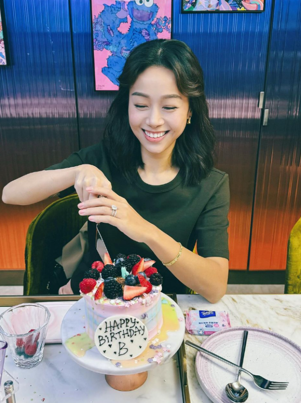 相隔了一段時間,黃心穎終於在社交平台公開最新近照。近日她迎來35歲的生日,昨晚於Instagram上載了數張連環慶生的生日照寫道:「寒冷的一天🥶溫暖的生日🥰多謝大家的祝福,願大家都健康平安快樂🙏🏻」。相中的黃心穎滿臉笑容,相信有不少人與她渡過了一個開心的生日。而貼文的最後更上載了一家人的大合照,而老公泥鯭就坐在正中間,當晚壽星女更獲贈一束似乎由老公送的粉色玫瑰,可謂放閃放得極低調。