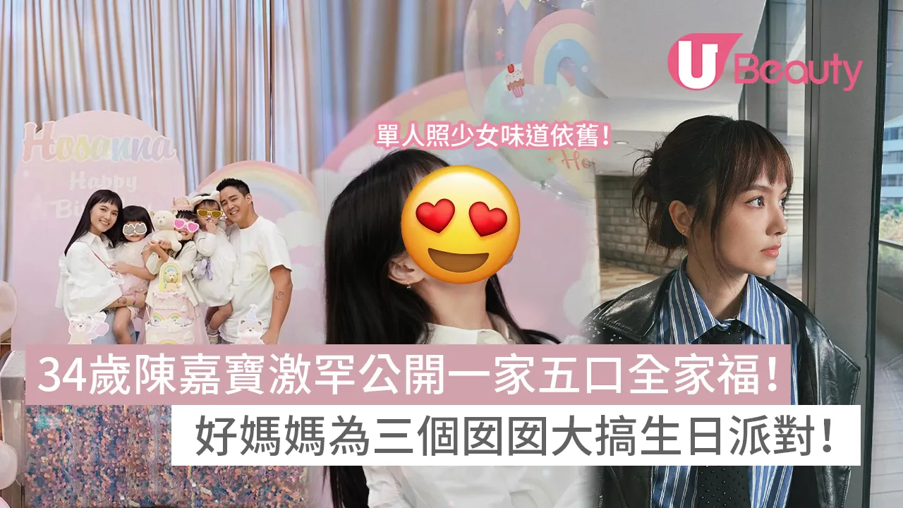 現年33歲陳嘉寶(Anjaylia)在2017年下嫁初戀男友黃頌祈後,2019年誕下大女Hosanna再接連誕下兩女,三年抱三!而Anjaylia亦因照顧三位千金而一度減少幕前工作,日前適逢大女Hosanna生日,身為好媽咪的她當然要為愛女舉行生日派對,其後也有分享多張照片與粉絲分享,更激罕公開一家五口全家福!