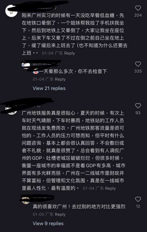 在網民分享的照片中,清晰可見該名女生挨住女職員,而地鐵車廂中的其他乘客也對這一感人的場景紛紛點讚。網友紛紛留言分享了類似的溫馨經歷,不禁表示人間溫暖,此舉也引起了網民對廣州地鐵服務讚譽有加。有網民表示之前自己在地鐵脫水時,多名工作人員紛紛伸出援手,提供熱水和陪伴,使他能夠平安度過難關。