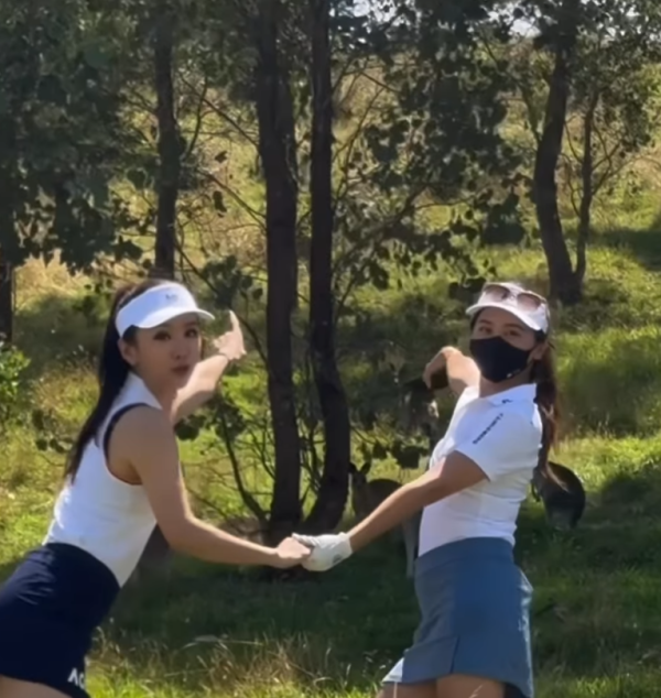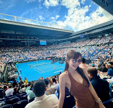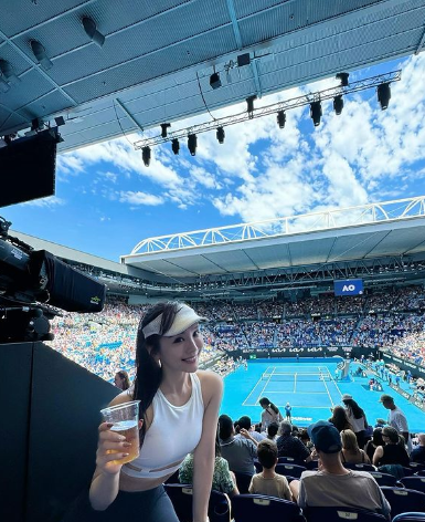 Dada今次到澳洲觀賞網球賽事都悉心打扮現身,先是穿上露腰背心,決賽當日則換上超低胸連身短裙,大騷3吋事業線及白滑美腿。另外Dada亦約了好友李思雅打高爾夫,更分享到當地高爾夫球場打Golf花絮片段到社交平台,Dada同樣以性感短裙上陣,若隱若現的白滑長腿引人想入非非,打波期間更看到一群袋鼠出現在草叢中,她則十分興奮地與袋鼠揮手,可見今次澳洲行過得十分多姿多彩。