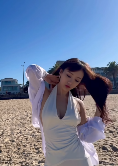 短片中原本在海邊漫步的Dada身穿白色低胸長裙現身,並留言寫道:「Watching the sea itself is a romantic thing!」,突然畫風一變,變成穿上超級火辣的bikini,大晒超長事業線和小蠻腰,以及擁有令人稱羨的零贅肉緊緻線條、結實腹肌以及線條明顯的馬甲線,可見積極操fit的成果!不少網民都紛紛大讚「好正❤️」、「身材樣貌都靚❤️😍」、「好fit❤️」、「不得了😍」,連圈中好友謝安琪都留言「Romantic girl🥰❤️」。