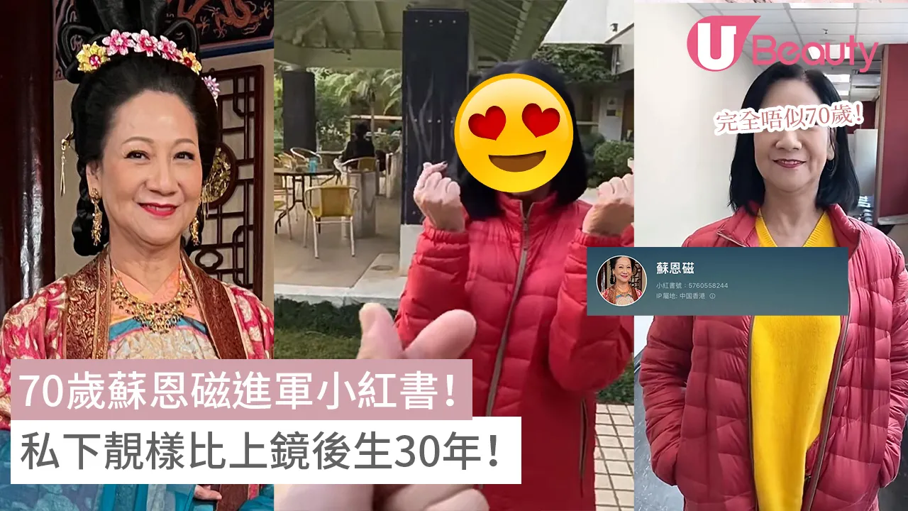 現年70歲的蘇恩磁最近就加入內地社交平台,與網民分享日常在電視城工作的片段,有不少網民表示現在才知道她的名字!蘇恩磁在內地社交平台上分享自我介紹的短片,「我而家正式加入咗小紅書喇,我得閒就會放啲片上去,你哋大家多多指教呀!」有網民表示現在睇蘇恩磁做戲有30年,但到現在才知道她的名字,不過蘇恩磁看到留言回應該網民,「現在知道都唔遲」回應相當大方。另外有網民指出蘇恩磁演活「闊太」,也經常「做」學校校長,並封她為「名校校長專業戶」。不過有人都大讚她保養得宜,完全不像70歲!