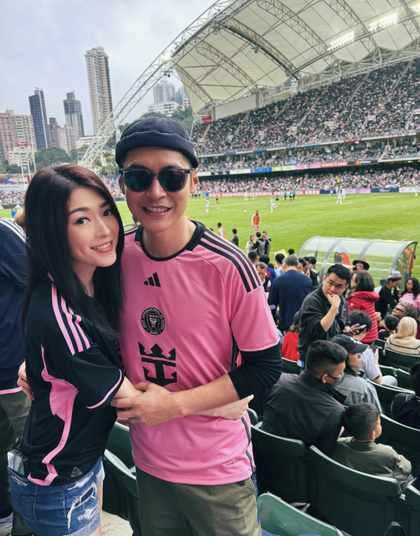 眾所週知陳家樂向來喜歡足球,在他的社交媒體亦看到不少追球星、世界盃或是踢足球有關的帖文,所以這次的表演賽當然會出席!而身為老婆的連詩雅亦陪伴老公感受現場氣氛,她留言道:「最後雖然冇美斯落場,不過喺現場睇足球賽係特別有氣氛嘅」更附上二人身穿印上「MESSI 10」情侶球衣摟腰合照,真是sweet爆!