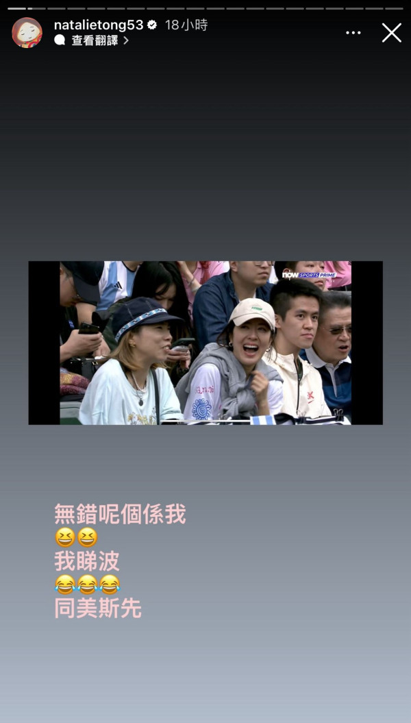 不過再低調亦逃不過攝影師的法眼!只見她被NOW的鏡頭捕捉到,上了隔籬台電視!畫面中的她大笑的模樣青春可愛。她事後除了分享在現場的打卡照外,更將截圖放到帖文和限時動態,笑言「無錯呢個係我」!