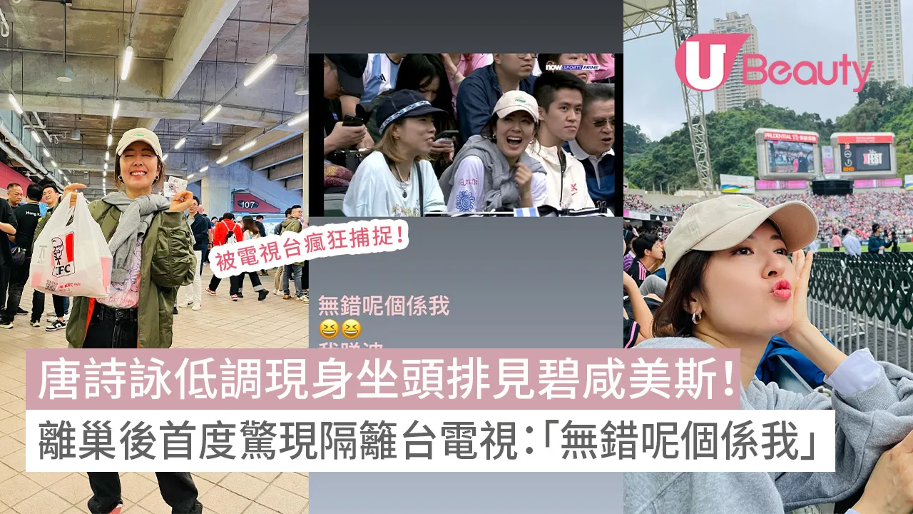 阿根廷足球巨星美斯(Lionel Messi)跟隨國際邁亞密與香港隊進行了一場表演賽。許多藝人和名人也出現在現場追星!而早前宣布離巢的唐詩詠亦有到場感受狂熱氣氛,她更被隔籬台Now捕捉到,大笑模樣相當可愛!事後她更將截圖放上社交平台,爆笑分享「無錯呢個係我」。