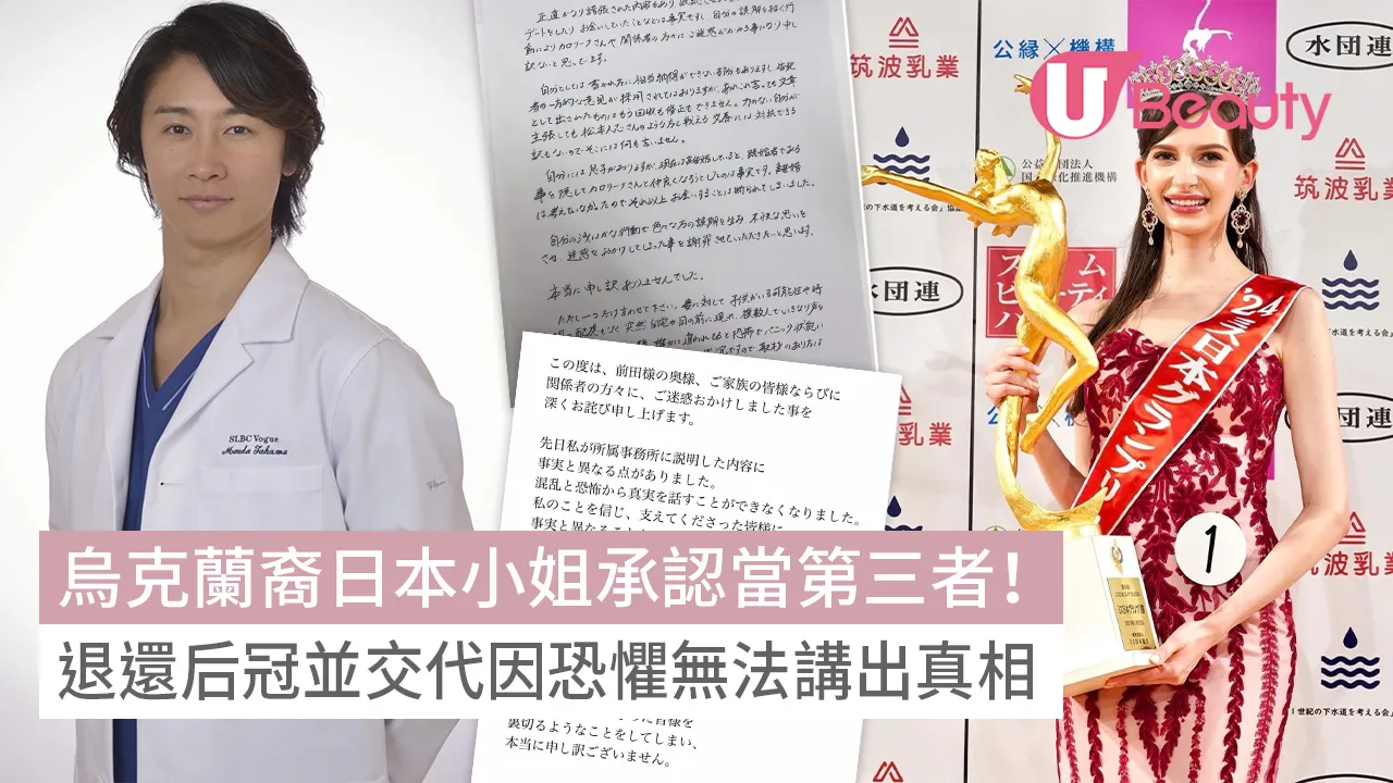 烏克蘭裔日本小姐椎野卡羅利娜(Karolina Shiino)贏得日本小姐后冠後,卻被爆料與著名整形醫生前田拓摩有不當男女關係。面對爭議,椎野卡羅利娜在2月5日發表聲明,承認了她與前田拓摩的第三者關係,並決定退還后冠,並表示自己因混亂和恐懼而沒有交代真相。