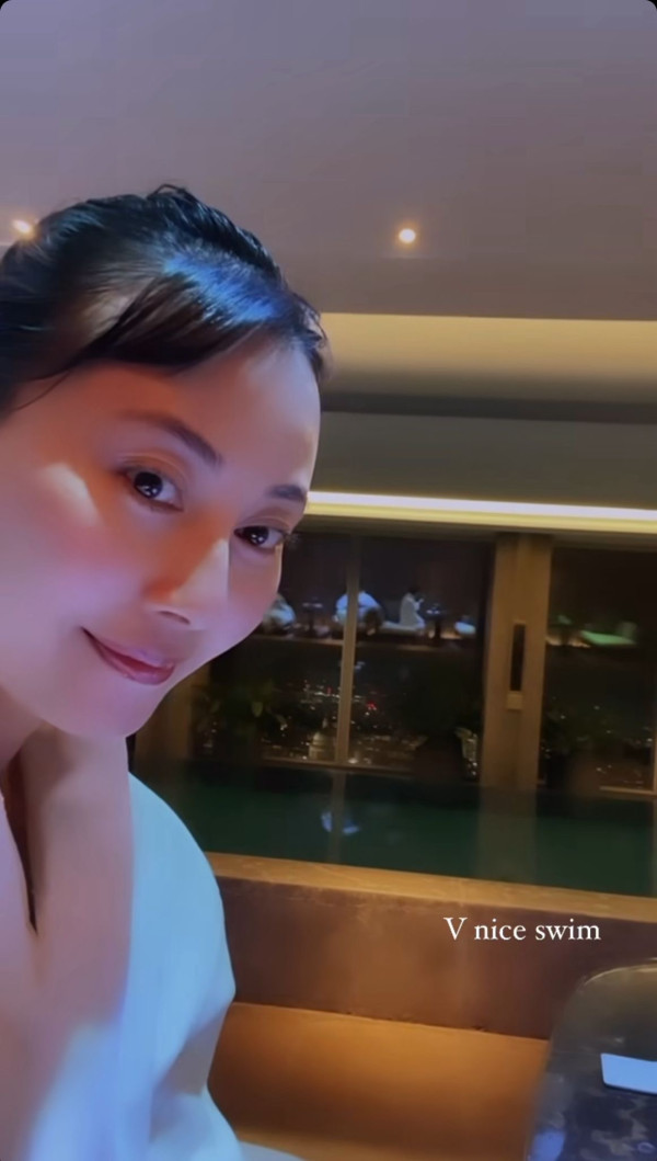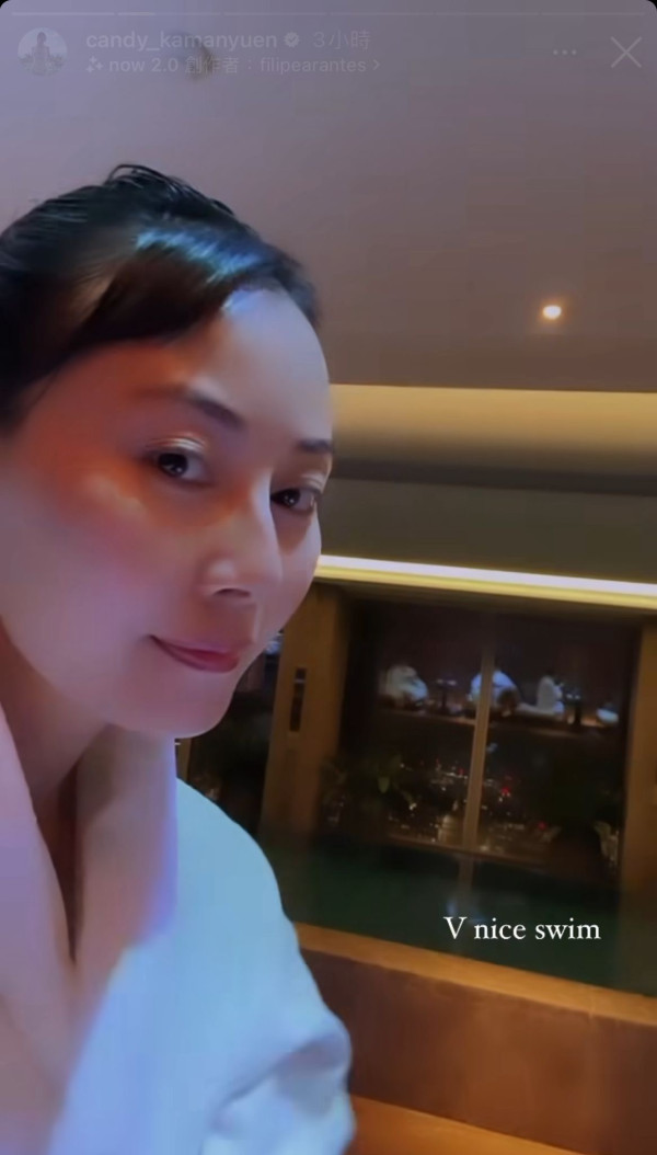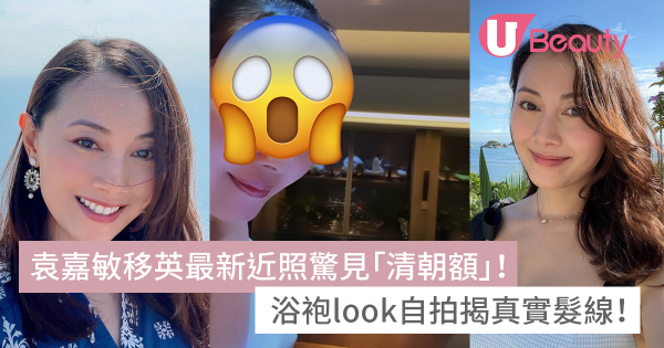 豪遊歐洲差不多一年的袁嘉敏終於有「落腳點」,不時都會在社交平台更新生活點滴的她,近日則在限時動態上更新最新的近照。相中的袁嘉敏以一身浴袍look自拍,而地點則標示在Shahbri-laThe Shard London,並寫道「nice swim」。但相中的她疑有脫髮隱憂,出現「清朝額」,露出超大個額頭,不難發現其前額的髮線較以前高,未知導致髮線後移的主因是身體出現問題還是壓力大。