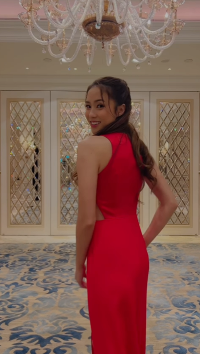最近活躍於社交平台的劉穎鏇,近日則發文貼出多張靚相和影片大晒超Fit身形,撰文寫道「what are you most excited to eat during Chinese New Year? 😋🧧❤️」。影片中的劉穎鏇穿上超應節的「火紅利是封」開叉長裙,若隱若現一雙筆直的43吋逆天長腿,向著鏡頭展示超有設計感的連身裙。除了正面的一條拉鍊引人注目外,腰間神秘的三角更是令人想入非非,沒有半點贅肉!發文後隨即引來不少網民大讚「😍😍人間極品」、「wow it opens from the front 😜」、「又高又靚😍😍」、「好好睇啊🔥」、「好靚女呀❤️」。