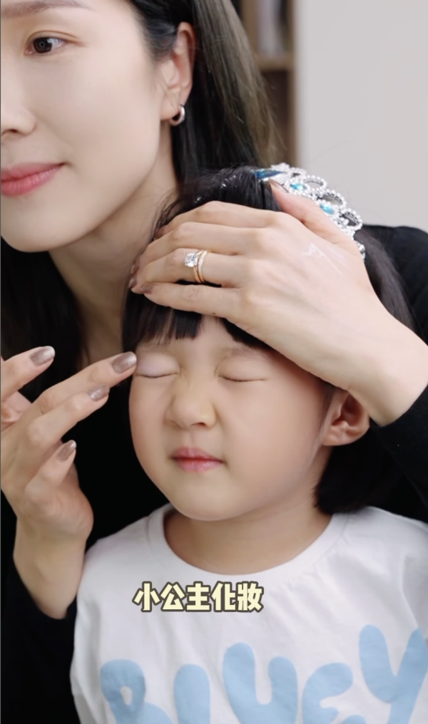 接下來便是穿著便服的李亞男,她以近乎素顏的狀態開始教「碎鑽天鵝妝」, 只有略施底妝的她雙眼依然精靈有神,說話間的小動作更帶有點少女感,到後來女兒亂入,要求李亞男為她化妝,她亦溫柔地為女兒塗上藍色眼影,場面溫馨又可愛!不少網民都留言大讚李亞男的天鵝妝很美,心心眼emoji充斥整個留言區!
