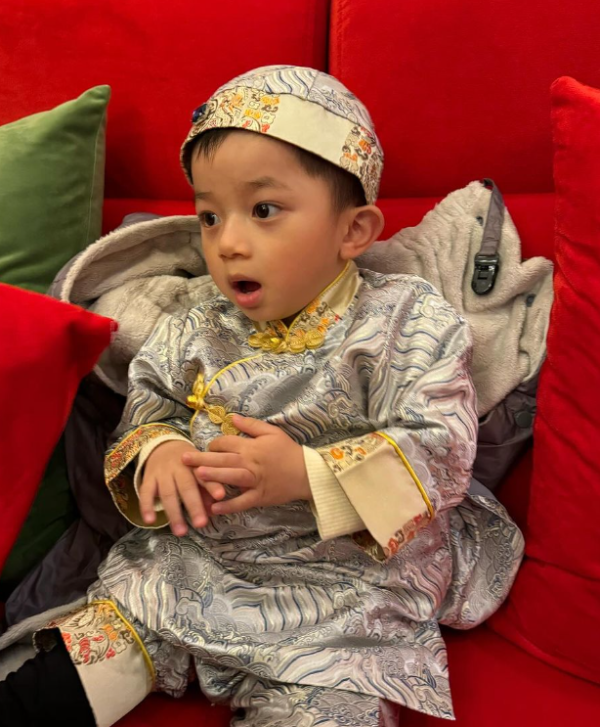 除了何雁詩變裝外,囝囝鄭讚廷(Asher)亦有穿上唐裝過新年。超精靈的他還會對著鏡頭擺出可愛的姿勢,更有網民大讚「Asher似足爸爸咁靚仔」、「皇帝仔 look 😂」,深信今個新年不但過得很有節日氣氛,亦過得很難忘和快樂呢!