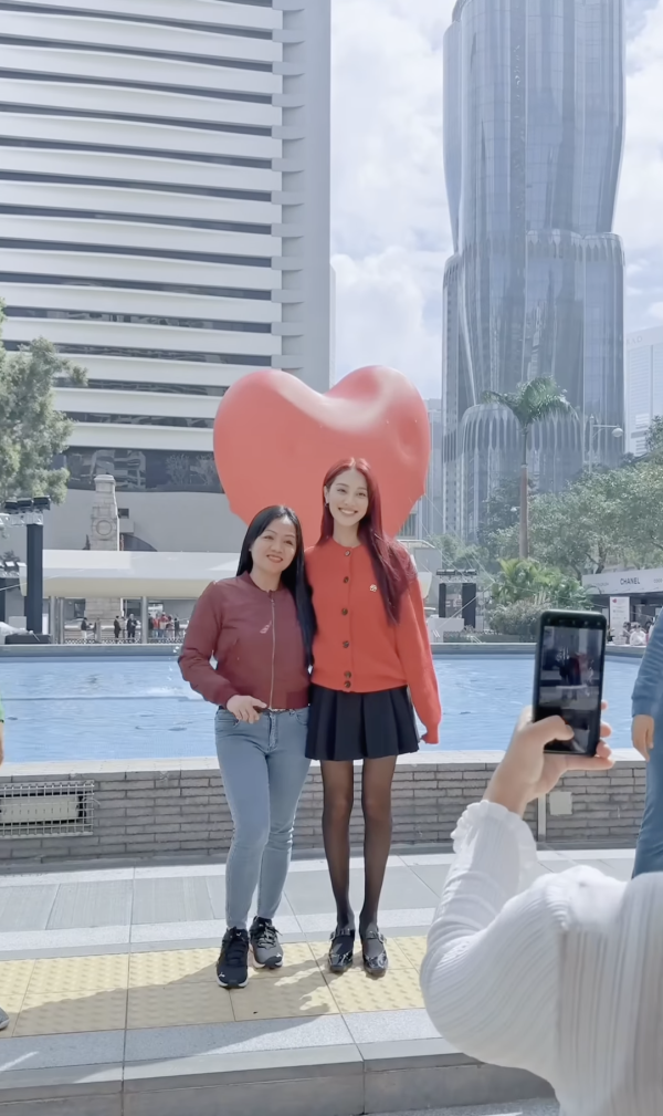 當中有兩幕更看出Grace真人超親民,第一幕是有一對情侶打算拍照,奈何男生手拿著飲品,難以與女友做出心心手勢,Grace馬上上前為男生拿著飲品。而第二幕則是Grace與小妹妹合照時教她做心心手勢,最後更從後環抱小妹妹,母愛爆棚!從影片中感受到Grace的親民與熱情。
