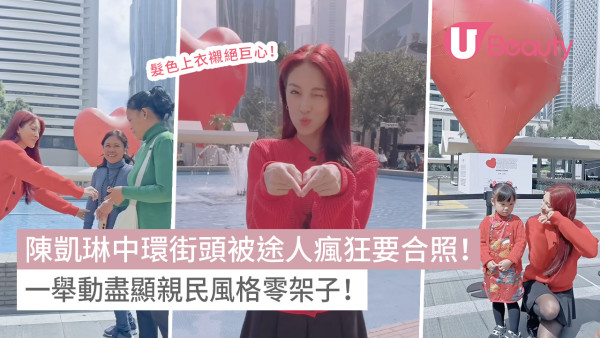 片中可見面對巨型浮心,Grace顯得相當興奮,她更配合心心穿上紅色冷衫以及染了紅色長髮,整個人都神彩飛揚!不少市民都認出Grace並要求合照,而Grace亦無「托手踭」,每張合照都笑得很燦爛。