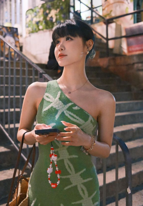向來十分保守的Kelly,近日就在Instagram晒出一輯性感相片,並撰文寫道「一秒夏天🧃」。相中的她身穿一條貼身綠色單邊膀的連身裙,除了露出了迷人的香肩之外,還盡顯了她美好身段!激罕的性感照引來不少網民讚不絕口「感覺唔同晒😍」、「好身材好生養😍」、「夏日福利😍」、「So pretty」、「好靚,好鍾意呢個look! 😍 期待以後多啲靚靚ootd福利posts!」。