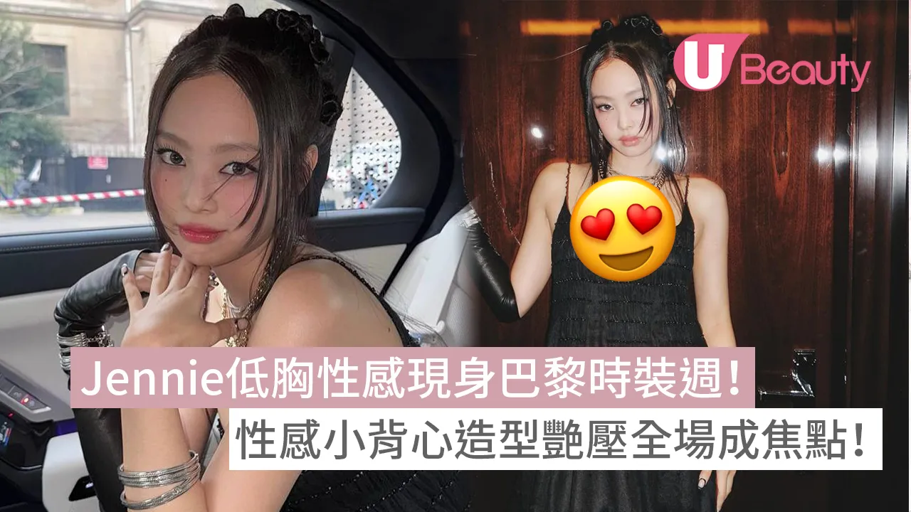 髮型方面,Jennie 今次的編髮十分巧妙,頭髮後方編成多個蝴蝶結,前方的頭髮則中分,為簡約的小黑裙造型添加更多層次感。