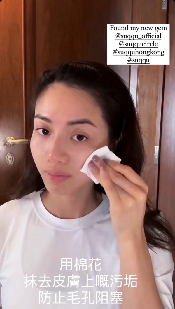 向來身材出眾兼笑容甜美的伍樂怡,近日就在限時動態貼出激罕的素顏相,並向網民分享日常的護膚方法。從樂怡分享的影片中可見,她身穿一件休閒的白色上衣,站在洗手間拍片分享自己的護膚程序。她表示平日上妝前會先用棉花抹走皮膚上的污垢,可以防止毛孔阻塞!無懼以素顏樣示人的伍樂怡,即使近看都沒有任何瑕疵,五官還是超突出。