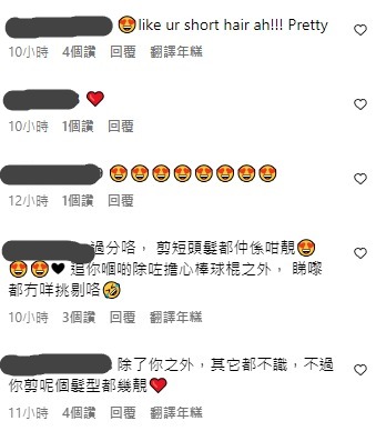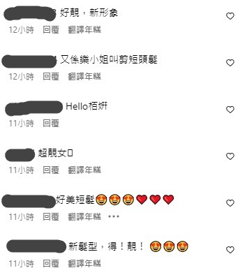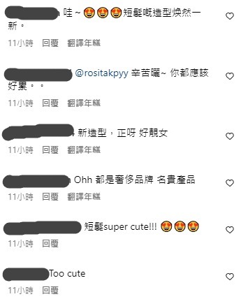 在剪短頭髮後,Rosita都有在社交平台開直播,不少粉絲看見新造型後都紛紛留言「過分咯, 剪短頭髮都仲係咁靚😍」、「好靚,新形象」、「好美短髮😍」、「😍短髮嘅造型焕然一新」。