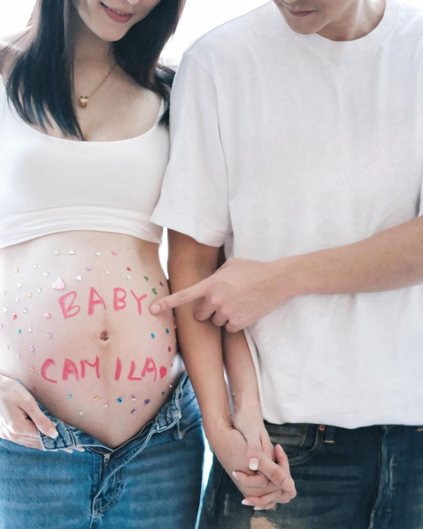 陳家樂和Shiga快將榮升新手爸爸媽媽,難掩興奮緊張的心情。Shiga和家樂今日在IG分享三張大肚寫真相,見Shiga腹大便便,連牛仔褲的褲頭拉鏈都已經拉不上去。而她肚皮上寫上:「Baby Camila」字眼,原來佗女,認真恭喜賀喜!Shiga留言說:「31 weeks,好期待與Baby Camila 見面!#inaround2months #bb已經三磅半啦 #期待又緊張 #itsaGIRL」