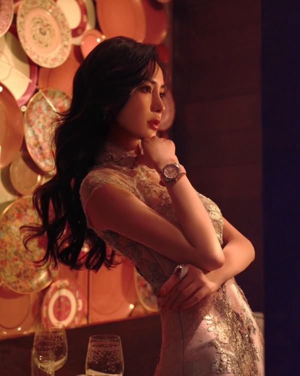 其後,她再以Alexis Mabille 2023 秋冬高級定製禮服現身,她身穿珊瑚色魚尾禮服配搭黑色腰封盡顯完美身形,再以維港海岸線作背景,眼利的網民更發現她佩戴了Breitling X Victoria Beckham聯乘推出的限量版手錶,粉絲都大讚「Angelababy太美了吧 」