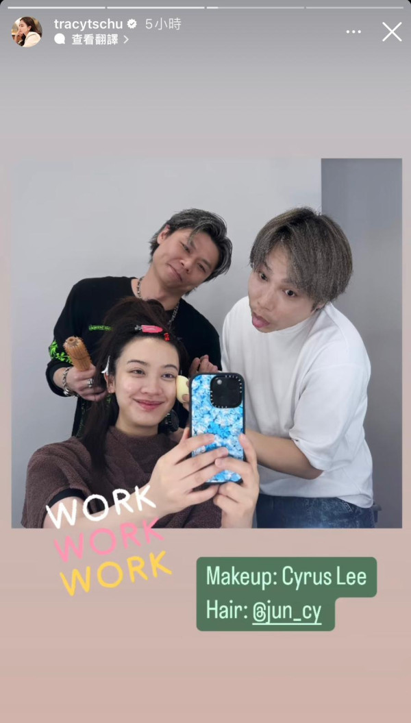 Tracy表示早前收到其髮型師4年前為她拍攝的菲林婚紗照,穿上全白露肩低胸婚紗的Tracy望住鏡頭表露十分燦爛的笑容,她留言tag了髮型師的IG,獲網民激讚是「真女神」,即使過了4年仍不忘表達感謝,非常貼心。
