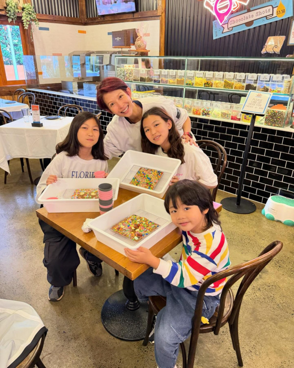 近日蔡少芬就在社交網大晒與三仔女的合照,並撰文寫道「美好的回憶」,相中四人疑似身處在一個朱古力工作坊,一同製造出屬於自己的朱古力蛋糕。眾人都笑容滿臉,近看三姐弟與媽媽的輪廓都十分相似,12歲大女和10歲二女似足媽媽風靚樣,十足餅印一樣,而細仔的五官就比較似爸爸張晉。