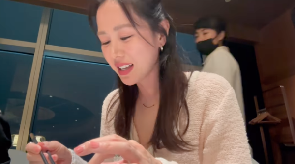 孫藝珍今次是旋風式到訪台灣出席活動,只逗留一天就返回韓國。而當她回到韓國後就馬上在社交平台分享「吃播」短片,見到孫藝珍大嘆海鮮餃、叉燒、螃蟹等料理,一口接一口,看得出相當開心同滿意,而她亦在短片下留言示大讚:「螃蟹超好吃」。但有網民「錯重點」,因為當時孫藝珍的座位上有盞頭頂「死亡燈光」,加上短片以低炒角度拍攝,但女神顏值依舊保持仙氣,美貌完全不受燈光及角度影響!
