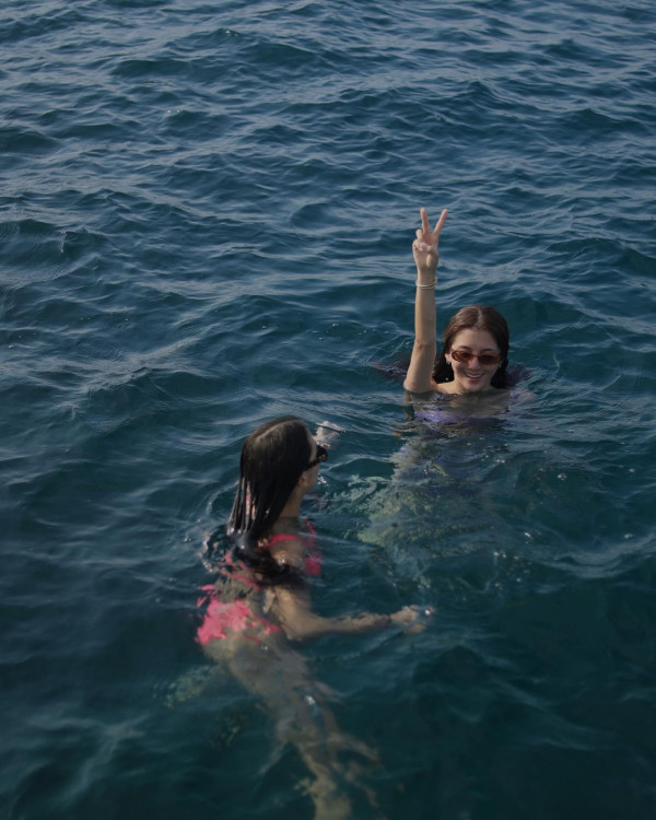 今次泰國之行吳千語亦有玩浮潛,她在社交平台上載一段玩浮潛的片段,片中她以紫色比堅尼上陣,大騷馬甲線及腹肌,不少網民都紛紛留言「好美!有法國女生那種氣質鬆馳感」、「女神!」、「千千美爆了!」。