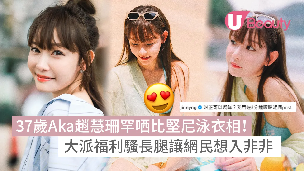 Aka在社交平台向網民和粉絲大派福利,激罕分享比堅尼泳照,並留言「這星期難得的陽光。」見到身穿粉藍色比堅尼上衣的Aka在沙灘擺出多個pose影相,其中一張就是只拍下一雙白滑長腿,令不少人想入非非更表示「長腿世一!」連好友吳若希都留言大讚:「咁正可以嘅咩?我用咗3分鐘嚟睇呢個post。」