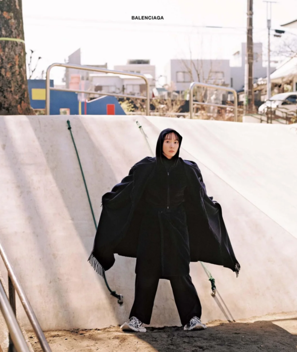 早前新垣結衣更為LV拍攝了最新秋冬女裝廣告,她身穿卡其色大衣及米色靴,手持LV monogram相機手袋,頭髮微微彎翹,營造出一種隨性性感氛圍。加上冷靜的表靜和眼神,讓她顯得神秘而充滿吸引力,就如「暗黑女神」一樣。