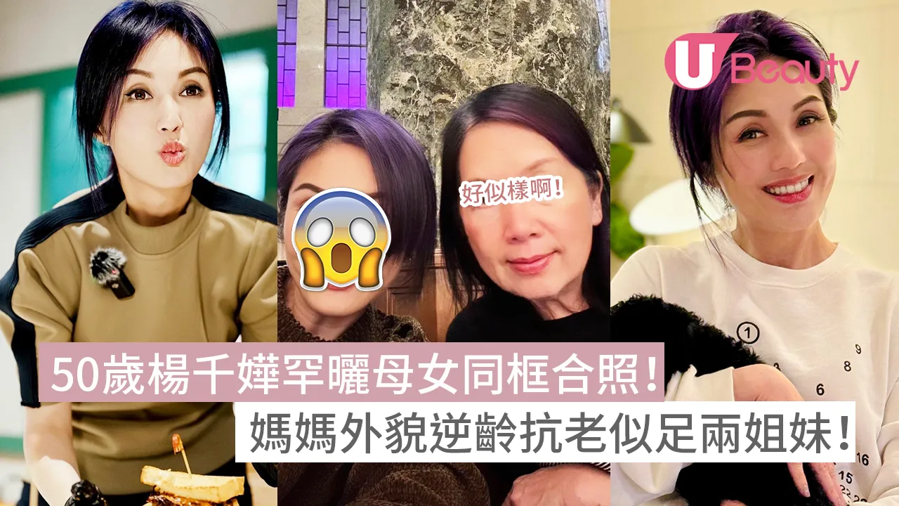 現年50歲的楊千嬅近年主力在內地市場發展,儘管她最近忙於世界巡迴演唱會的演出,但她都不忘在母親節當日與媽媽慶祝,共度時光。近日,楊千嬅在限時動態中曬出一張與媽媽的合照,「楊媽」展現出的逆齡外貌與千嬅就如兩姐妹一樣,五官和臉型都十分相似!