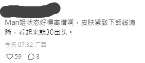 其實有不少網民經常在中環野生捕獲Man姐,早前亦有網民把偶遇的相片上載到社交平台,該名網民都表示「穿搭好青春,人很nice也超白,白到发光🌟」。網民隨即紛紛表示「Man姐狀態好得離譜啊,皮膚緊緻下顎線清晰,看起來就30出頭」、「這狀態無敵了呀」、「man姐這個臉看著也就二十出頭」、「狀態太好啦!」。
