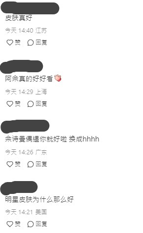 有網民在社交平台分享了一張在商場野生捕獲佘詩曼的合照,以「香港五月天取消結果偶遇佘詩曼」為標題,撰文寫道「本來整個人很down,結果去商埸見到了佘詩曼,本人非常nice,合影都同意了」。相中的阿佘身穿白色上衣和牛仔褲,向著鏡頭展露微笑,完全沒有架子!近看阿佘肌膚狀態超緊緻,皮膚亦光澤透亮,難怪被網民稱為「凍齡女神」!