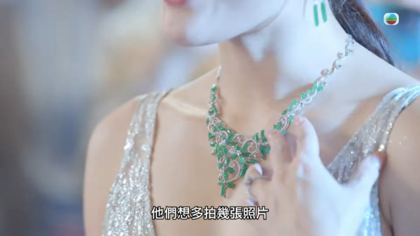 劇組透露該場還有一個亮點,是三位「丘太」配戴的翡翠頸鏈均是貨真價實,而且相當名貴!有份配戴翡翠頸鏈的陳靜,事後受訪時坦言現場有專人跟場,而她不用埋位時亦盡量坐定定:「現場有專人幫我哋戴同除,唔使埋位時我哋會乖乖地坐定定,盡量唔好周圍走令到首飾有損毁。其實有專人跟場真係安心好多,因為我自己都唔係好識戴。」