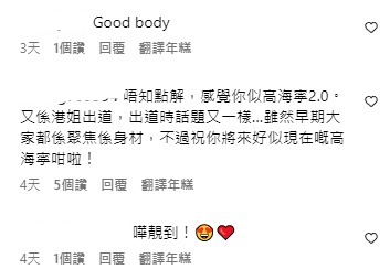 早前她在IG上載的數張吊帶背心靚相盡顯白滑美背,豐滿的上圍亦吸引網民紛紛大派心心!甚至有網民表示「唔知點解,感覺你似高海寧2.0。又係港姐出道,出道時話題又一樣…雖然早期大家都係聚焦係身材,不過祝你將來好似現在嘅高海寧咁啦!」