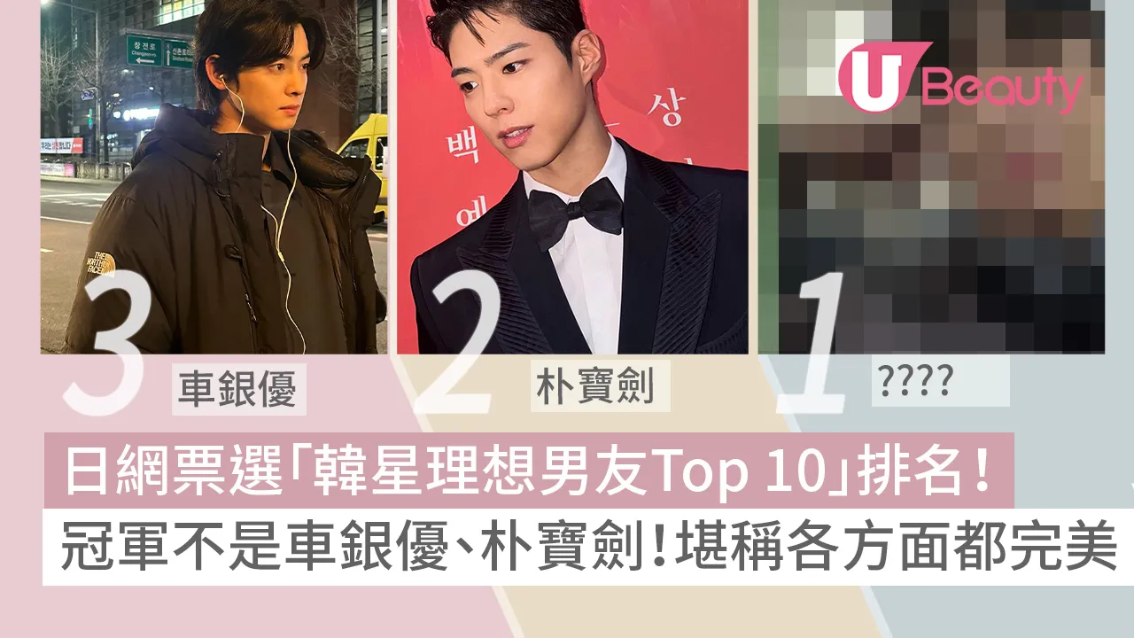 第三名則是「臉蛋天才」車銀優,他的帥氣外表令人心跳加速,有網民形容單是想像他在身邊就感到緊張;而第二名則屬於零負評男神朴寶劍,他的親切可愛、善良又努力的性格被深受粉絲喜愛,加上溫暖的笑容,讓不少網民表示能照亮整個房間。