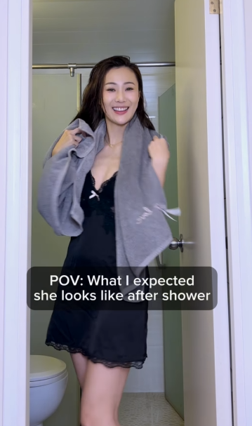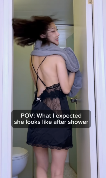 朱智賢拍攝了一段洗澡後的「理想與現實」的影片,在理想中朱智賢放下一頭中長髮並穿上性感低胸內衣,向着鏡頭轉了一圈,背部則全露直落廷伸至臀部,讓「絕對領域」若隱若現,令網民充滿遐想。而在現實的另一面中,朱智賢就穿上「娘爆」的紅色大花套裝,頭戴浴帽更超豪邁地刷牙,與「理想」形象大反轉,隨即有網民笑指「大姑 look 夠貼地😂」。