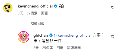 有不少網民都大讚「 soooo Sexy😎😎行山之餘記得著多件衫」、「So hot Grace🔥」、「proud of u that u can keep this goal」、「公主很美和辣🔥」。不過這身打扮似乎令老公鄭嘉穎感到不滿,他在Grace文中用「眼睛」的表情留言,隨即Grace就回應「冇事冇事,運動衫一件」。