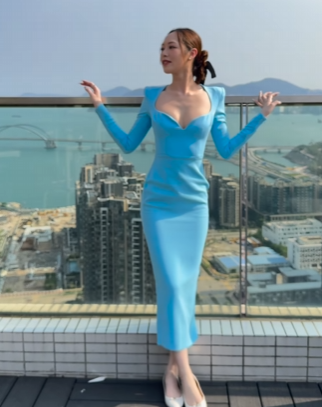 Crystal在個人社交平台上載了一段身穿藍色連身裙超低胸的短片,撰文寫道「勇敢嘗試,揭開新的自我。每一次蛻變,都是向更高的自己邁進。」影片中的Crystal穿上的連身裙展現出她完美的S形身材,超級Fit,就連走路都散發著自信,與過去被網民指「MK味濃」的時期相比已變得不一樣!整段影片不少網民都把焦點放在她豐滿的上圍,在她行樓梯時,攝影師從上而下拍攝Crystal,有些畫面稍微令她出現離罩的情況,網民看到後擔心她會走光,並建議她使用防走光貼,但馮盈盈則大方回應「很安全放心」。