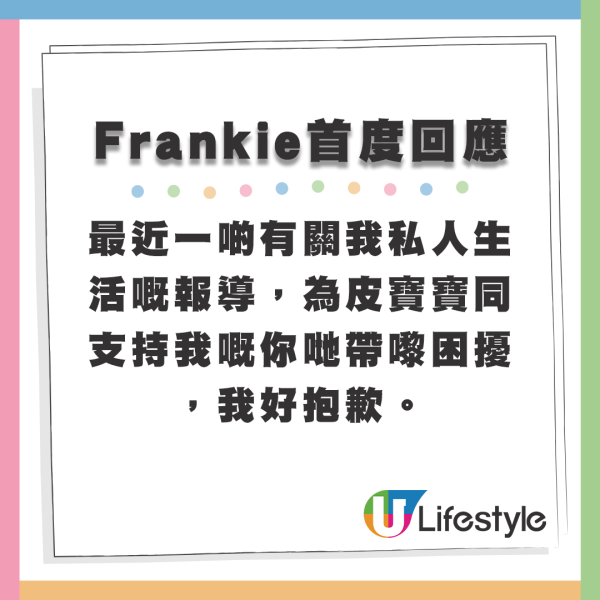 更新:Frankie開腔為女友護航