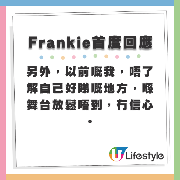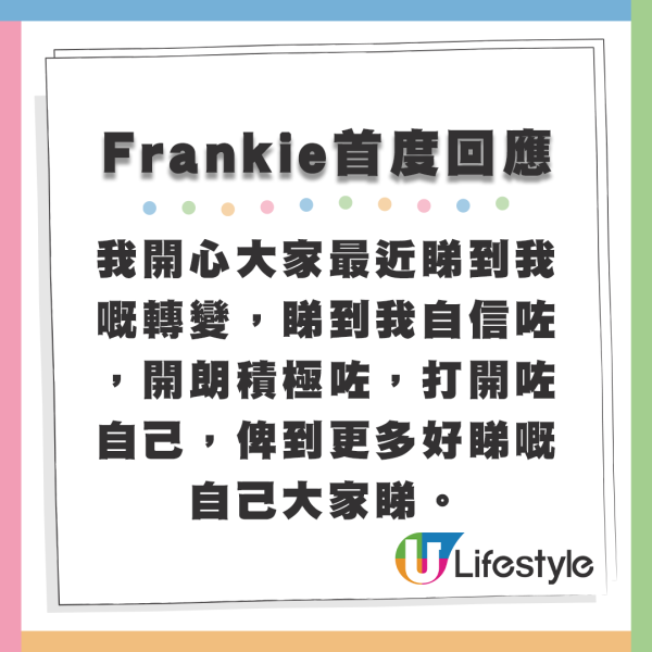 今日(20日),Frankie在IG社交平台首度開腔回應,撰寫252字長文,全文如下: