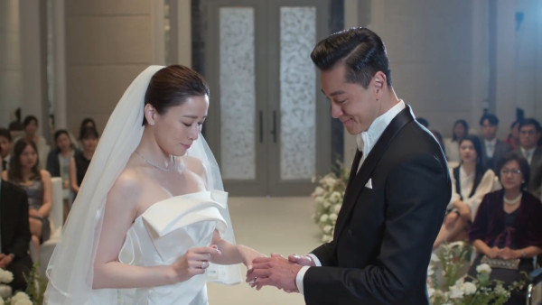 來到結局周,TVB搶先公開第30集佘詩曼穿上婚紗的造型,劇情來到Rio(黃浩然飾)與皓兒(佘詩曼飾)舉行婚禮的畫面,從劇照中可見阿佘穿上白色抹胸婚紗裙,把迷人白滑的香肩展露在外,隔著螢幕都能感受到她那滿瀉的氣質感!