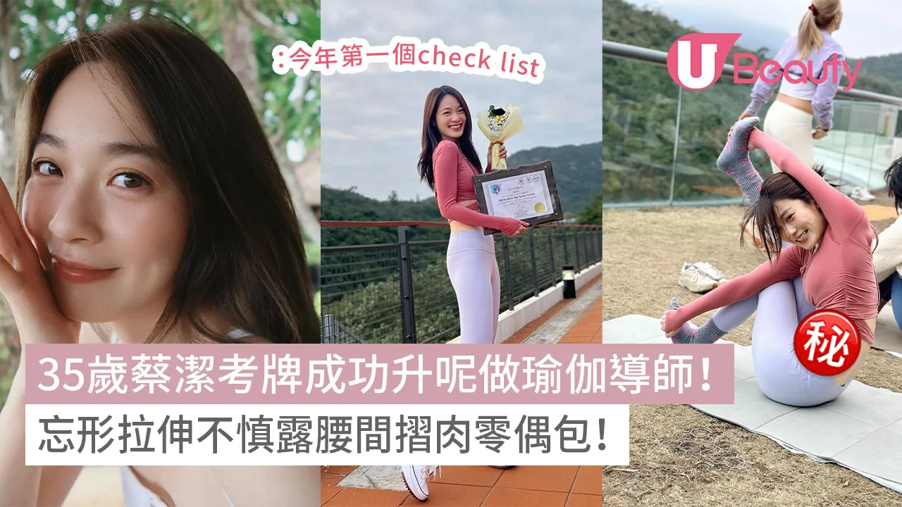 被稱為顏值僅次於李佳芯的「TVB第二靚花旦」蔡潔(Jacky)今年入行第10年,35歲的她多才多藝,不只做戲得唱歌得,她更在社交平台分享自己成功考牌成為瑜伽導師,相當開心!她在社交平台上分享了自己做瑜伽時的樣子,當中一張拉筋相更露出腰間的摺肉,被網民大讚超貼地!