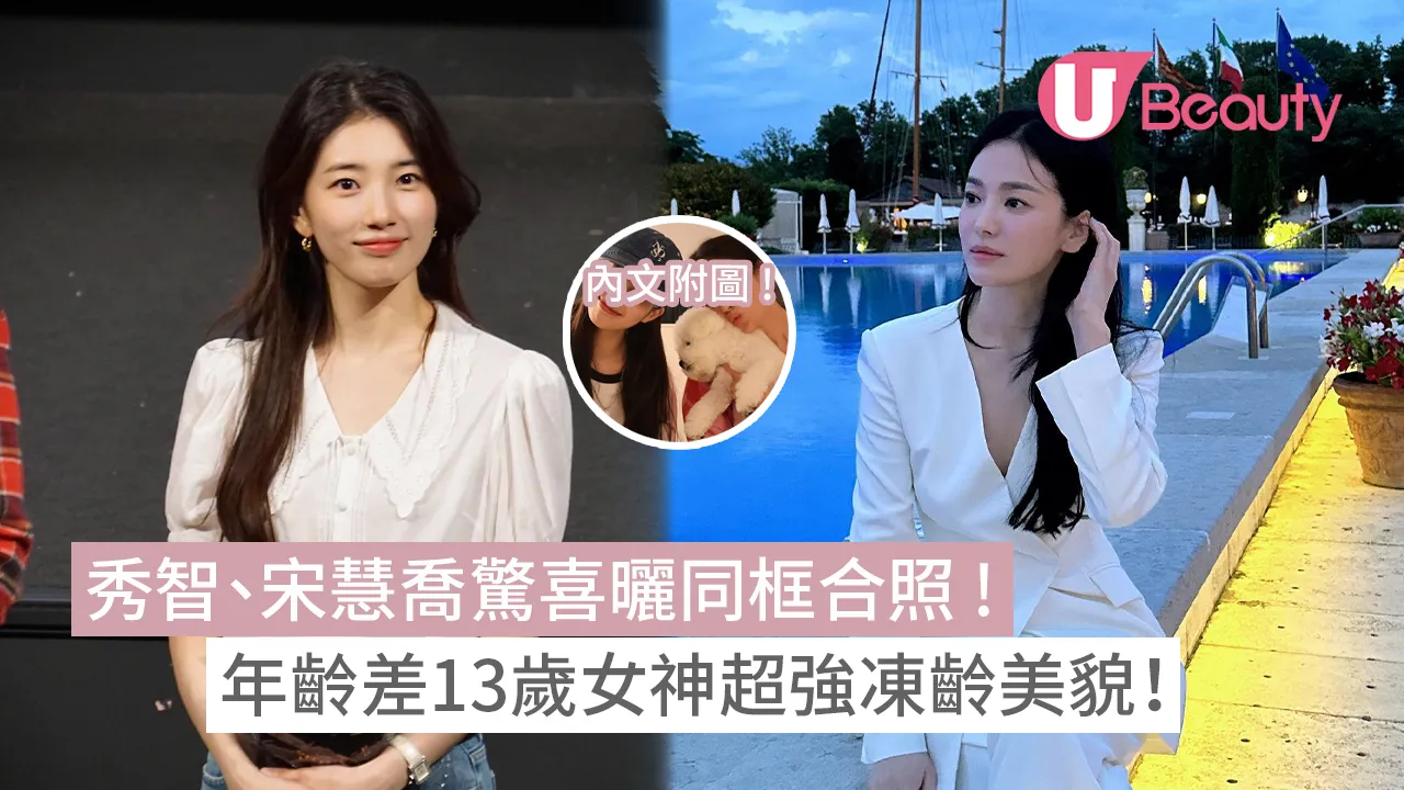 42歲宋慧喬與29歲的秀智都是韓劇迷的「國民初戀」,二人分別在社交平台上載一系列合照,連宋慧喬的愛犬Ruby都入鏡,兩代女神的同框合照令網民十分驚喜,更大讚宋慧喬凍齡有道,「完全看不出二人相差13歲」、「這是什麼神仙組合」。