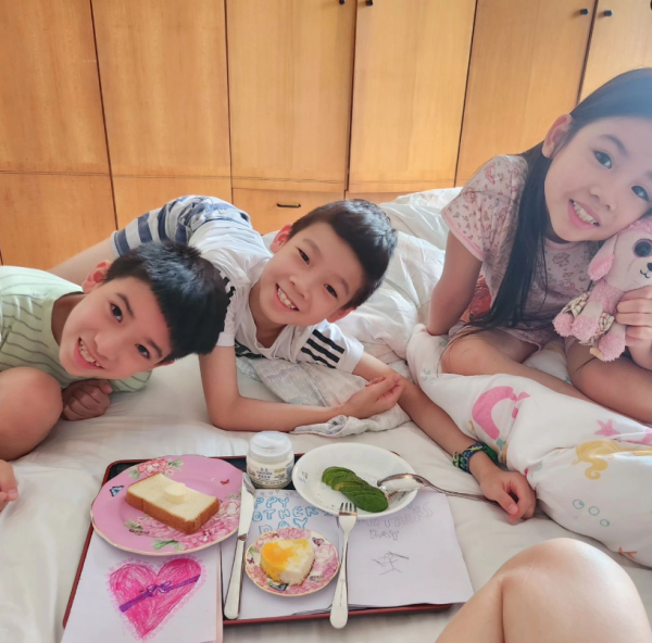 早前Aimee在個人社交平台大晒三名子女為她慶祝母親節的相片,開心的她更配文「First time ever being served breakfast in bed! Thank you, my little darlings, for waking up early to make mommy's favorite healthy avocado / yogurt breakfast! Usually, mommy is the first one to wake up in the house to make brekkie.(第一次在床上吃早餐!謝謝你們,我的小寶貝們,早起為媽媽做最喜歡的健康優格早餐!通常,媽媽是第一個起床做早餐的人)」