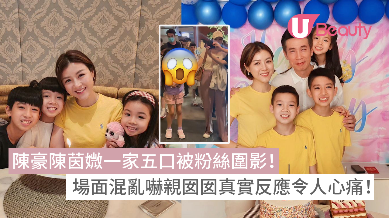 早前有網民在社交網貼出偶遇陳豪陳茵媺一家五口的情況,影片中可見他們疑似在酒店的大堂被一班粉絲包圍,當中更有一名粉絲較為激動,不斷緊貼並舉高手機合照,而Aimee當時就超親民停低與該位粉絲拍照。不過這種大場面就嚇親囡囡,片中可見當時囡囡神情緊張,舉高拉著媽媽的手,而爸爸就拖著兩個仔仔,大顯父愛啊!