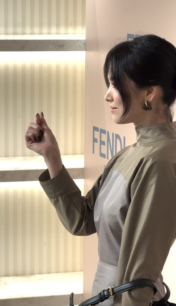 42歲的宋慧喬昨晚以軍綠色及灰色連身裙現身Fendi在廣東道的首間概念店開幕活動,雖然只是快閃現身,但她都有向在場粉絲打招呼,網民都紛紛大讚宋慧喬真人膚況太好了,更不禁直言「喬妹不會老嗎?」。早前宋慧喬於韓國仁川機場出發前往香港時已經使用最新系列的 FENDI Peekaboo So3手袋,搭配米色皮革 FENDI x Chupa Chups掛飾和迷你 FF 印花 Strap-You 上飾,展現出時優雅和時尚的機場穿搭。
